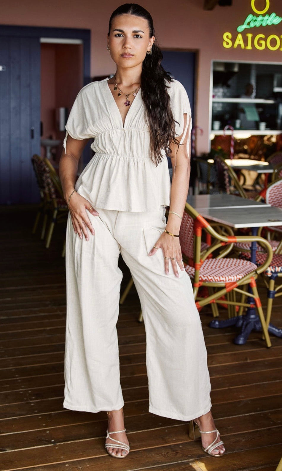 Ensemble pantalon en lin, taille unique
