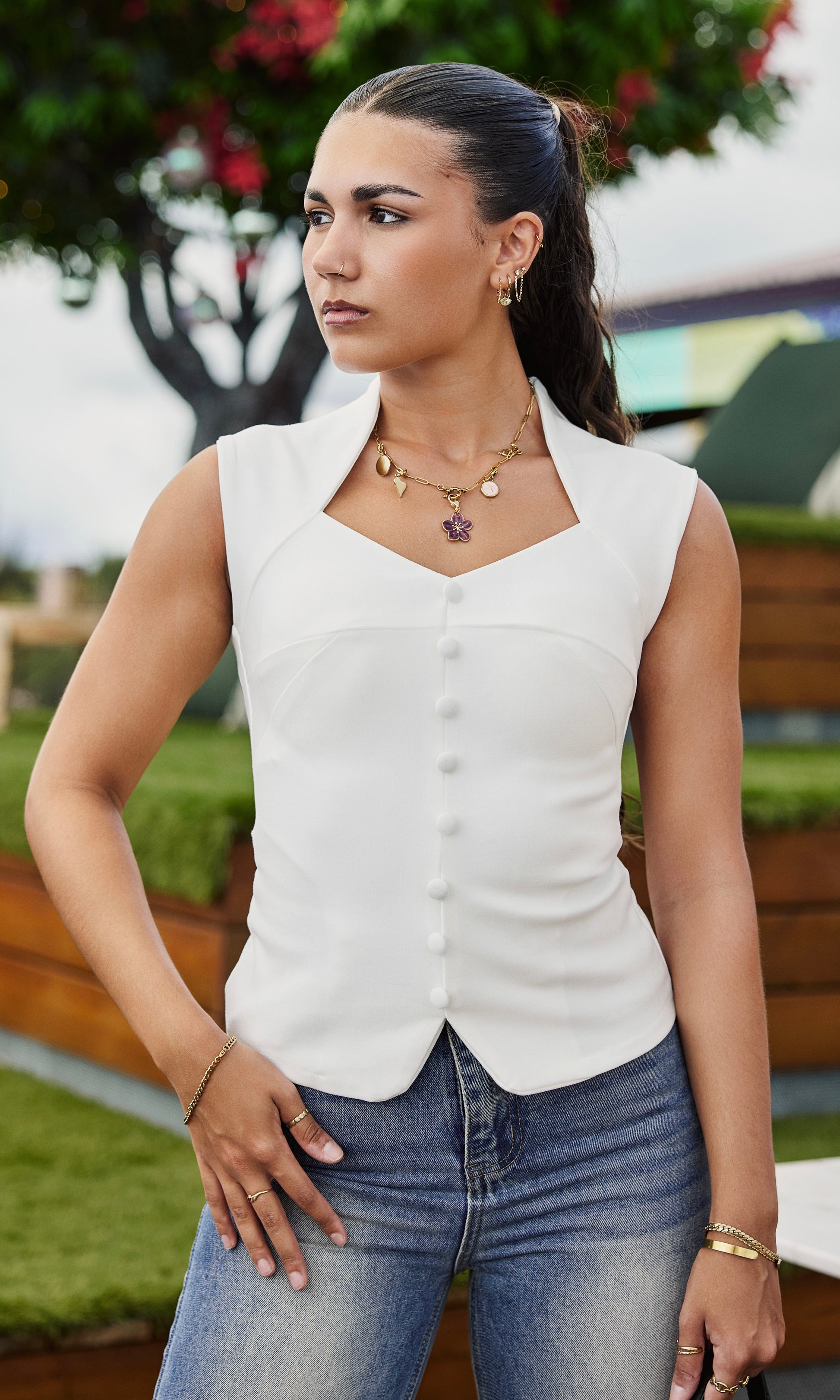 Top à faux boutons